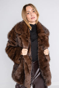Questo sofisticato cappotto Lokita in pelliccia ecologica è il capo statement che aggiunge lusso e calore al tuo guardaroba invernale. Il design oversize avvolgente e la ricca texture la rendono un capo di grande impatto e incredibilmente confortevole. Il rever ampio e strutturato incornicia il viso con eleganza. Ideale per un look serale o per elevare un outfit quotidiano, è l’espressione perfetta di uno stile chic e Made in Italy etico. Disponibile nei colori nero, bordeaux e nel classico marrone per ogni tua esigenza di stile.