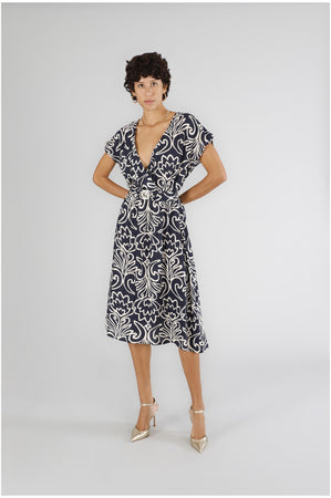 Abito scollatura incrociata in marocaine stampato