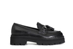 Mocassino in pelle con morsetto e nappine