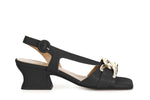 Sandalo asimmentrico in pelle con catena