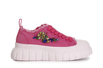 Sneaker allacciata con frange ai bordi e patch strass