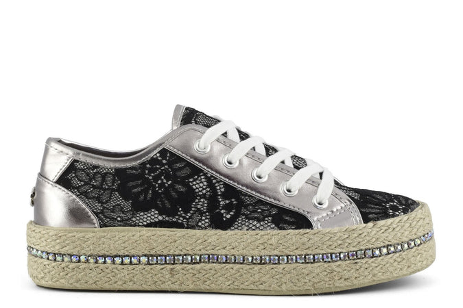 Sneakers fascia corda in pizzo e glitter