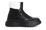 Tronchetto allacciato in similpelle trapuntato colletto in pelliccia sintetica