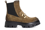 Tronchetto in pelle scamosciata con elastico e morsetto
