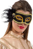 00761-1 maschera nera in plastica rigida c/velluto, piume e gemma