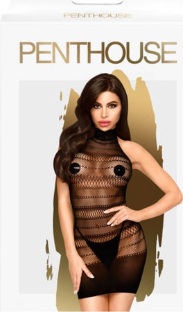 Penthouse Abitino Nero Stretch Dress Aderente Elasticizzato Corto Trasparente Succinto Tg S/L Unica Lingerie Intimo Sexy