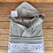 L'accappatoio è dotato di un cappuccio per asciugare i capelli, pratiche tasche laterali e una comoda cinta in vita per una vestibilità avvolgente.