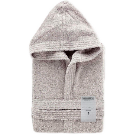 Accappatoio Mon Amour con cappuccio tinta unita grigio 400 gr. di spugna idrofila TG.L