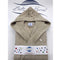 L'accappatoio presenta un cappuccio e un bordino a contrasto, che aggiungono un tocco di stile e funzionalità.