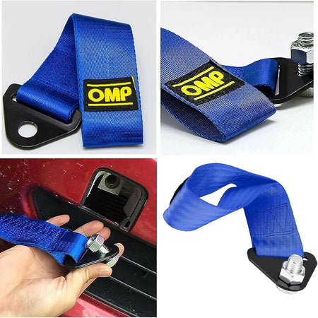 Gancio traino blu omp inylon in tessuto auto nylon racing pista cinghia rinforzata fune di traino