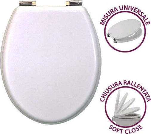 Copriwater Universale In Legno Mdf Chiusura Rallentata Soft Close Laccato Bianco