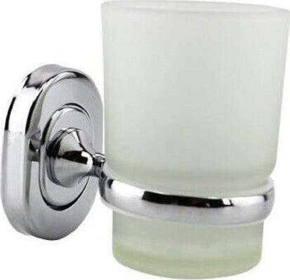 Porta Spazzolini Dentifricio Con Bicchiere Vetro Satinato a Parete Bagno 69182