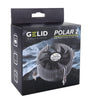 ICPU-GE-POLAR2 è una ventola silenziosa da 75 mm senza cornice con sistema di controllo intelligente PWM di Gelid (Pulse Width Module). L altezza di di soli 15 mm si adatta anche ai case più sottili. Dispone di una migliore configurazione delle pale del dissipatore che permette di ottenere un raffreddamento a 1400 - 2800 giri ad alte prestazioni in un design compatto. Il dispositivo di raffreddamento pesa 205 grammi.