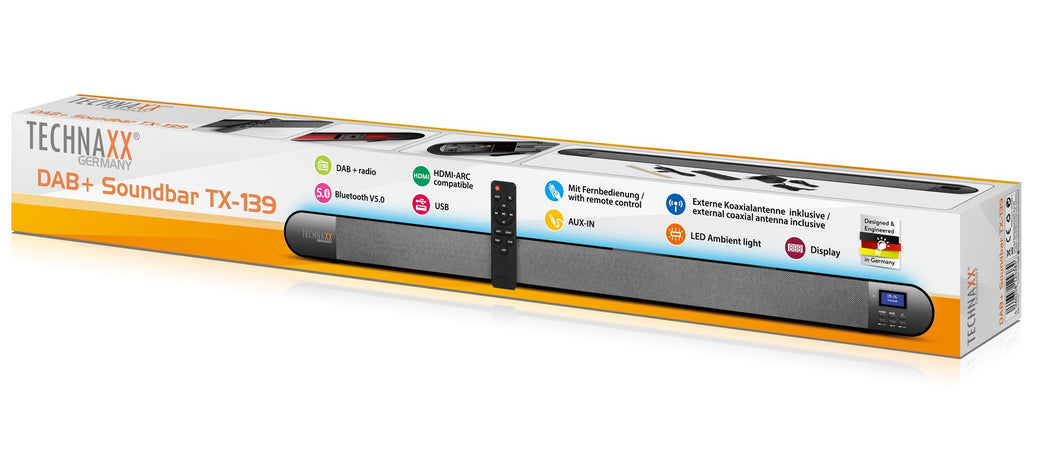 Soundbar con Radio DAB+ e FM Bluetooth V5.0 Connessione Ottica e Luce LED 7 Colori, TX-139