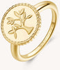 Anello sigillo in acciaio 316L e finitura pvd oro 14K con albero della vita.