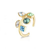 Anello in acciaio 316L, finitura color oro e cristalli Swarovski© crystal, erinite, aquamarine, crystal moonlight e peridot. Misura 14