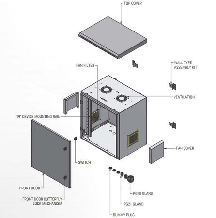 Armadio Rack 19'' a Parete 16U Grigio IP55 Porta Cieca prof. 450 mm