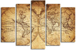 Grande Mappa del Mondo Pittura decorativa su tela 5 pezzi