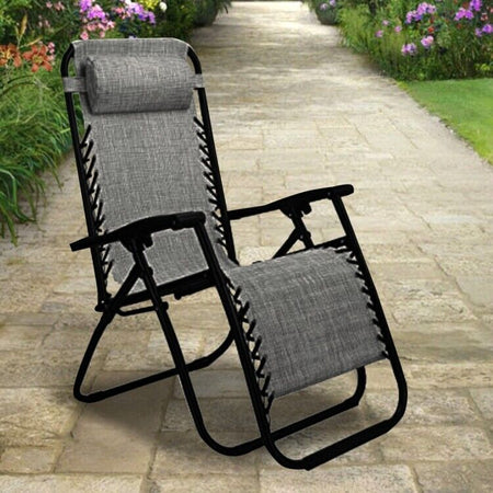 Sedia Sdraio Cordonata Gravità Zero Reclinabile Pieghevole con Cuscino Grigio
