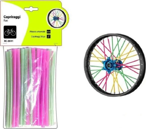 SET 36 PEZZI COPRIRAGGI COPRI RAGGI FLUO PER RUOTA RUOTE BICI BICICLETTA XC-2611