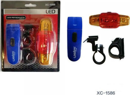 Set Luce Bici Bicicletta Frontale Torcia Led Posteriore Sicurezza Ganci Xc-1586