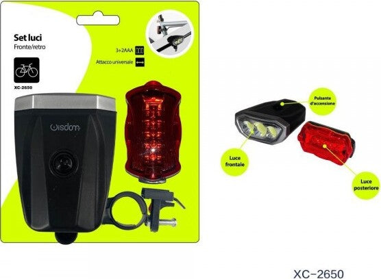 Set Luci Fronte/retro A Batteria Per Bici Bicicletta Attacco Universale Xc-2650
