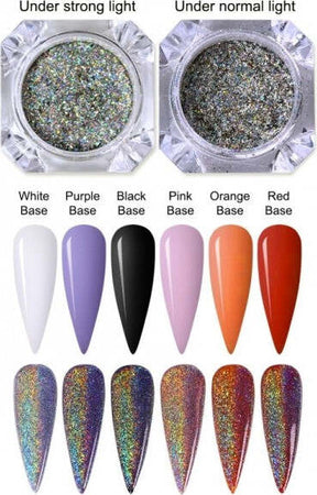 Con i nostri Pigmenti Holografici, trasforma le tue unghie in opere d'arte mozzafiato. Sperimenta colori vibranti, effetti magici e dettagli impressionanti. Aggiungi ora il tocco finale perfetto alle tue creazioni con il nostro straordinario set di polvere pigmenti holografici.