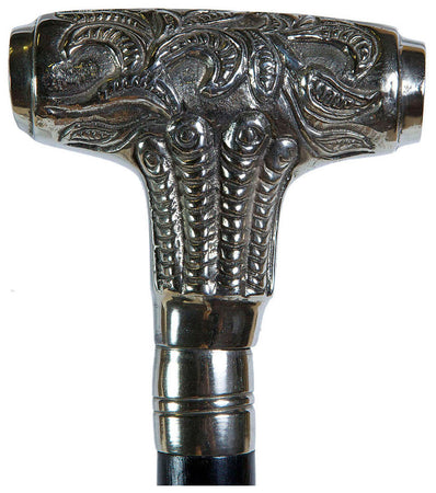 Elegante bastone da passeggio in stile inglese realizzato in legno con finitura nera. La caratteristica figura della presa è realizzata in peltro argentato mentre la parte finale è dotata di un gommino antiscivolo. Ottimo regalo per qualsiasi occasione o come articolo da collezionare. Altezza cm 90.