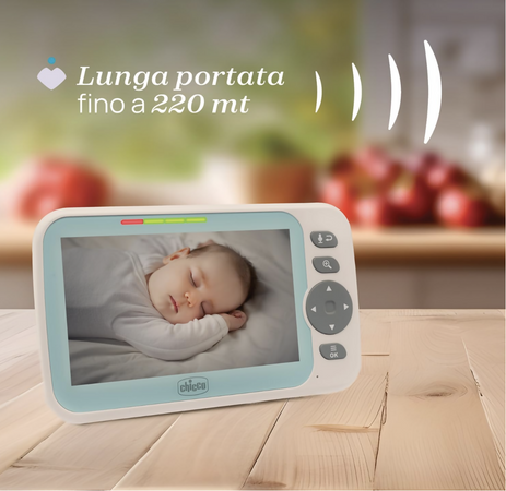 Chicco Baby Monitor Video Evolution, Telecamera Rotante Motorizzata per Neonati e Bambini con Schermo a Colori 5", Portata 220 m, Visione Notturna, Termometro, Suoni Bianchi, Microfono e Altoparlante