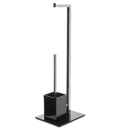 Asta portarotolo in metallo e portascopino in plastica in un elegantissimo colore nero, larga base quadrata in cristallo che impreziosisce l'oggetto e garantisce un eccelente stabilità .