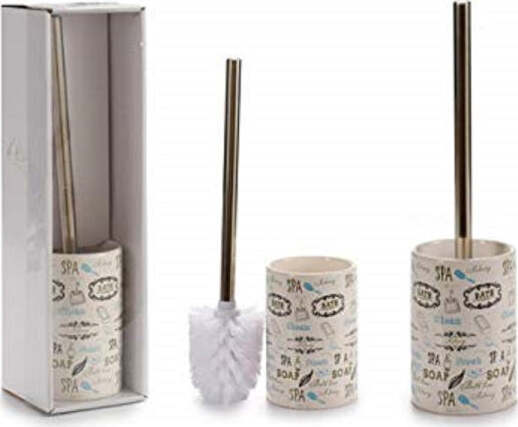 Portascopino In Ceramica Acciaio Design Scritte Spazzola Scopettino 9.6x9.6x36cm Bagno Wc