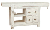 Biscottini Banco da lavoro Country in legno massello di tiglio finitura bianca anticata L184xPR74xH92 cm. Made in Italy
