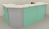 Banco vendita angolare con pannello dogato frontale da negozio abbigliamento cm. 312x156x106h