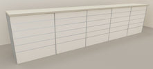 Banco vendita da esposizione con pannello dogato verniciato cm. 460x64x106h