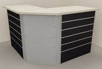 Composizione banco cassa angolare con pannello dogato per esposizione negozio abbigliamento cm. 156x156x106h
