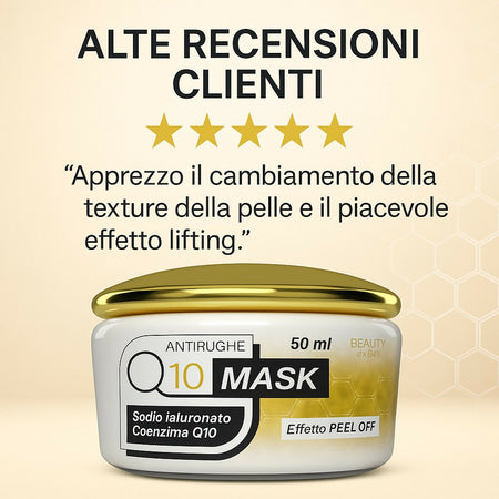 Maschera Viso Anti-Età con Coenzima Q10 e Acido Ialuronico – Trattamento Effetto Lifting, Peel Off, Idratante e Rimpolpante, Tonica e Idratata | AlohaLabs Q10 Mask 50ml
