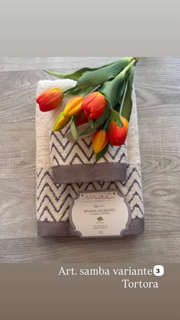 Set Asciugamani 1+1 Via Roma 60 Samba – Spugna di Cotone Jacquard 420 gr/m²
