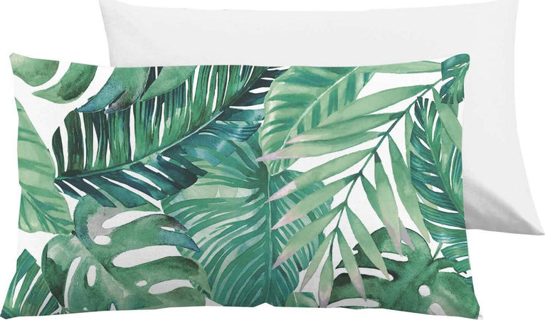 Set 2 Federe Novilunio Bifaccia Doubleface Stampa Digitale 100% Cotone Made in Italy Fantasia Foglie