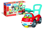 Un'auto dal design unico, 3 diverse funzioni: cavalcabile, primi passi e centro attivita'! Studiato nei dettagli con ruote sterzanti, sistemi antiribaltamento e paraurti in gomma. Volante elettronico con suoni e canzoni, premendo la chiave si attiva la modalita' con effetti sonori realistici.