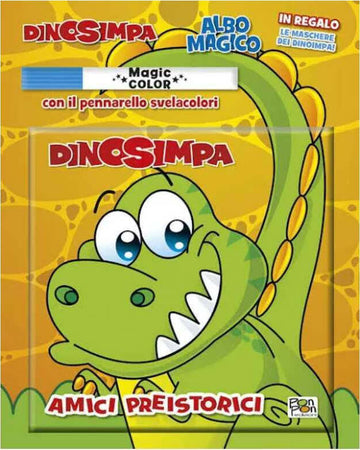 Colorare con il pennarello svelacolore e' davvero una magia! Dai disegni in bianco e nero in un baleno compaiono i coloratissimi Dino-Simpa, i dinosauri piu' simpatici di sempre! Il pennarello magico e' atossico e non macchia, e' adatto anche ai piu' piccoli!