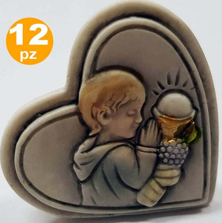 Bomboniere A Cuore Per Prima Comunione Bambino Bianco In Ceramica Soprammobile