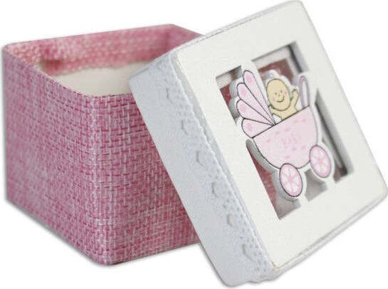 Set Cubo Rosa Porta Confetti Con Carrozzino Bomboniera X Nascita Battesimo Bimba