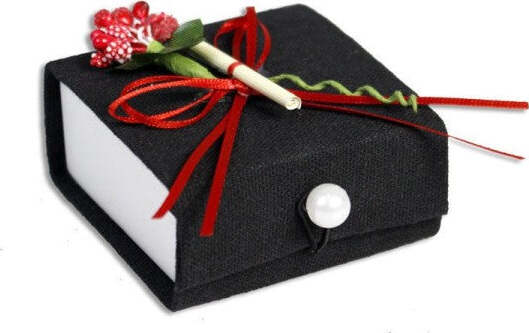 Scatolina in Tessuto con Pergamena Porta Confetti Bomboniera Laurea Nero