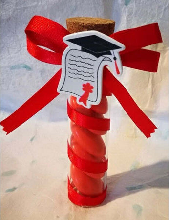Posiziona la tua laurea nel centro della scena con la nostra BOMBONIERA LAUREA PROVETTA ROSSA ROSSO APPLICAZIONE LEGNO TOCCO. Acquista ora e crea ricordi indelebili!