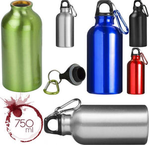 Borraccia Bottiglia Alluminio 750ml Sport Lavoro Scuola Viaggi Con Moschettone