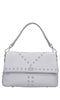 Borsa mini Frivolous in pelle e borchie. Un comparto. Dettagli in metallo tono su tono. Chiusura con bottone a scatto. Tracolla chain tono su tono in pelle removibile.