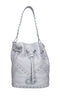 Borsa modello Frivolous in pelle. Dettagli in metallo tono su tono. Chiusura con bottone magnetico e coulisse. Manico e tracolla pink chain in pelle removibili.