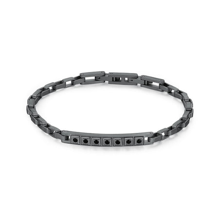 Bracciale in acciaio 316L, finitura pvd colore rutenio e cristalli neri.