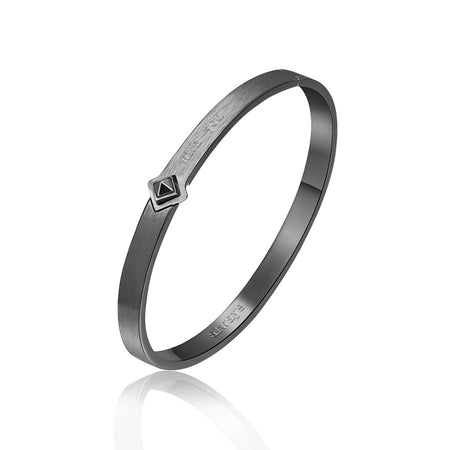 Bracciale rigido in acciaio 316L spazzolato e finitura pvd colore rutenio con incisione.