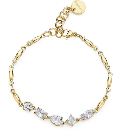 Bracciale di Brosway della collezione Affinity. Gioiello da donna in acciaio 316L, finitura pvd colore oro e cubic zirconia. Lunghezza: 18 cm.
